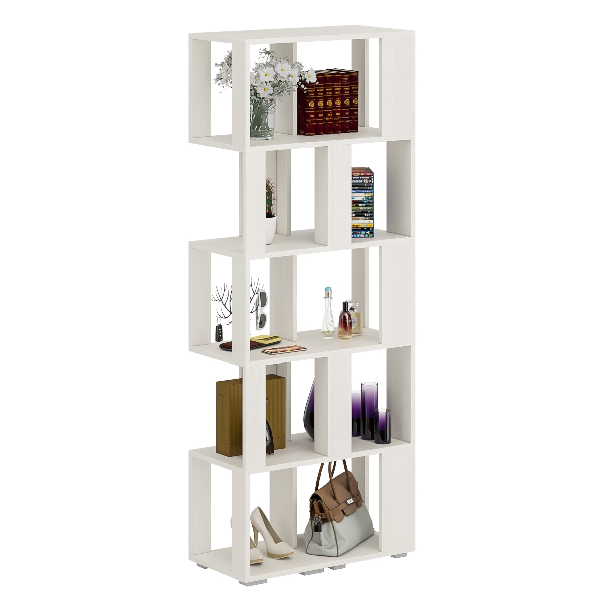 Комплект их двух стеллажей, объединенных в единый блок, визуально максимально легкая с прекрасным доступом к каждой полечке, идеально подойдет и для книг и журналов и как стенд для поделок Вашего ребенка. Комплект их 2-х стеллажей конструктивно представляет из себя 5 ярусов с четырьмя полочками с доступом с четырех сторон. Комплект их 2-х стеллажей установлен на пластиковые опоры высотой 20 мм, защищающие покрытие пола от повреждений.