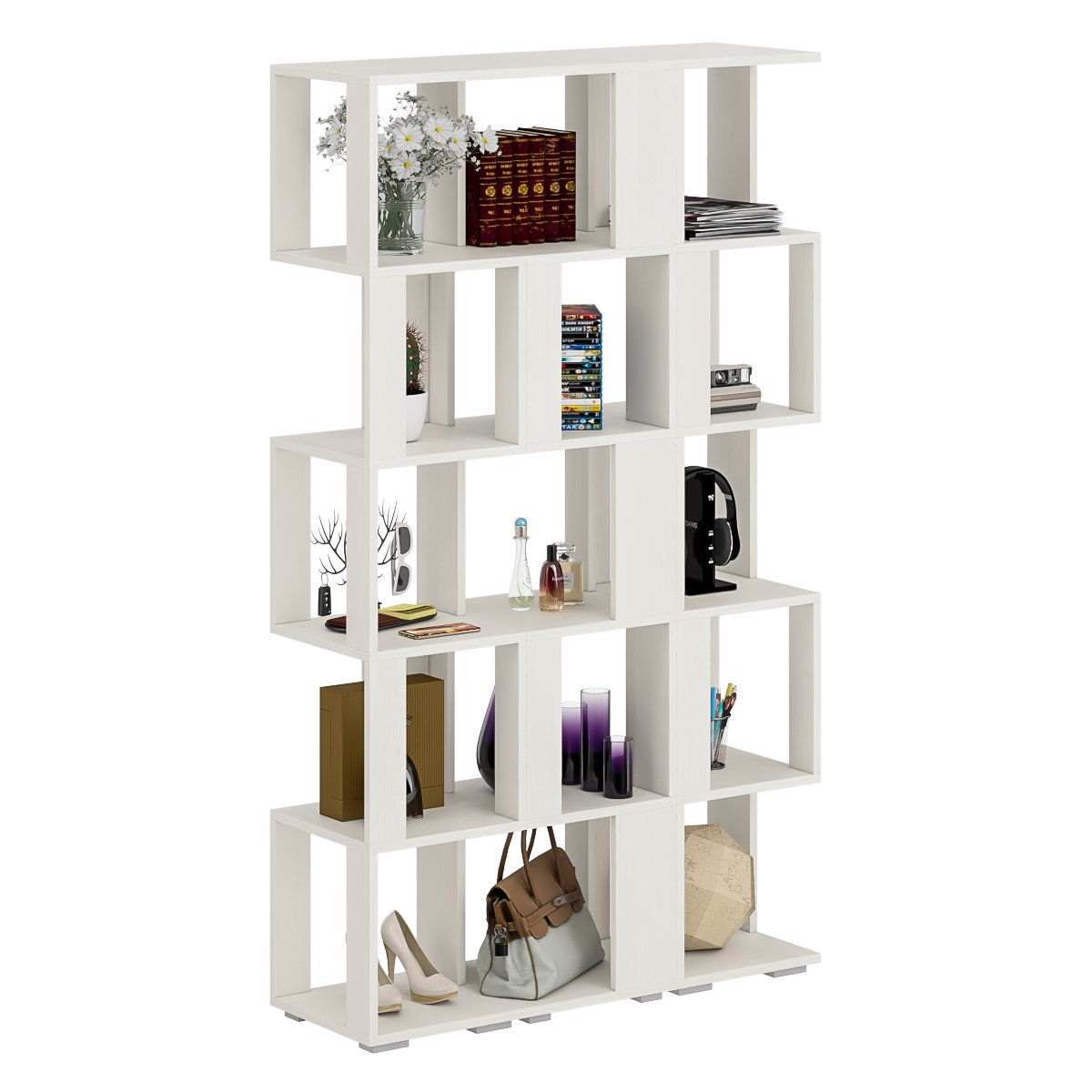 Комплект их трех стеллажей, объединенных в единый блок, визуально максимально легкая с прекрасным доступом к каждой полечке, идеально подойдет и для книг и журналов и как стенд для поделок Вашего ребенка. Комплект их 3-х открытых стеллажей конструктивно представляет из себя 5 ярусов с четырьмя полочками с доступом с четырех сторон. Комплект установлен на пластиковые опоры высотой 20 мм, защищающие покрытие пола от повреждений.