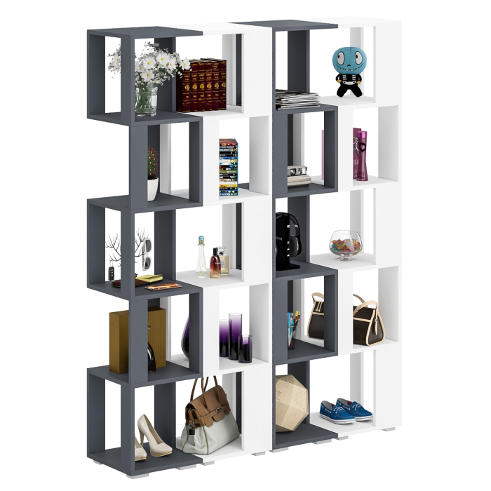 Комплект их четырех стеллажей, объединенных в единый блок, визуально максимально легкая с прекрасным доступом к каждой полечке, идеально подойдет и для книг и журналов и как стенд для поделок Вашего ребенка. Комплект конструктивно представляет из себя 5 ярусов с четырьмя полочками с доступом с четырех сторон. Комплект установлен на пластиковые опоры высотой 20 мм, защищающие покрытие пола от повреждений.