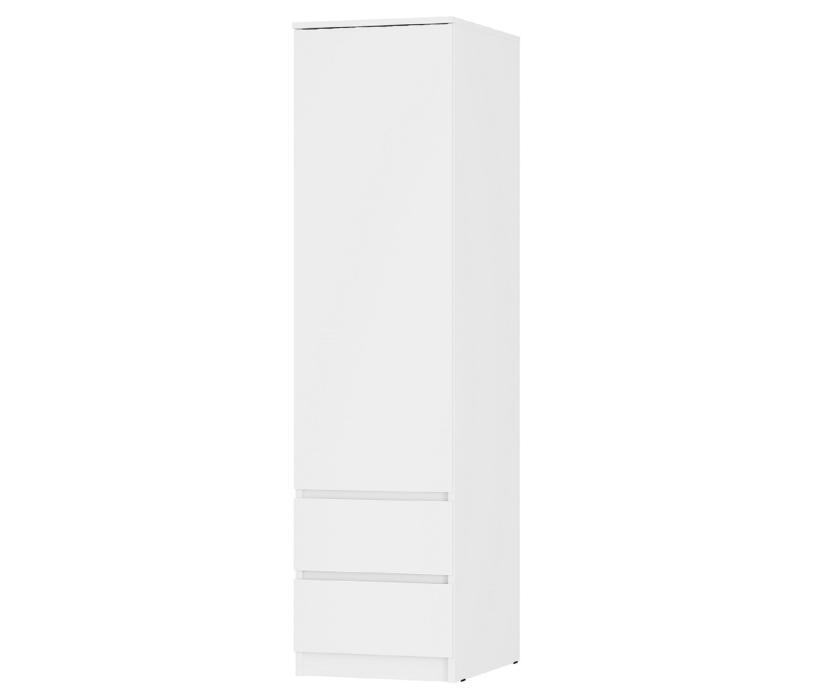 Лаконичный шкаф-пенал из серии Симпл идеально впишется в небольшую комнату или квартиру-студию. Наполнение модуля - стационарная штанга и два выдвижных ящика. Можете установить шкаф-пенал в прихожей в качестве системы хранения верхней одежды и сезонных аксессуаров, а в спальне - для того, чтобы с комфортом разместить белье и деликатную одежду на плечиках.
