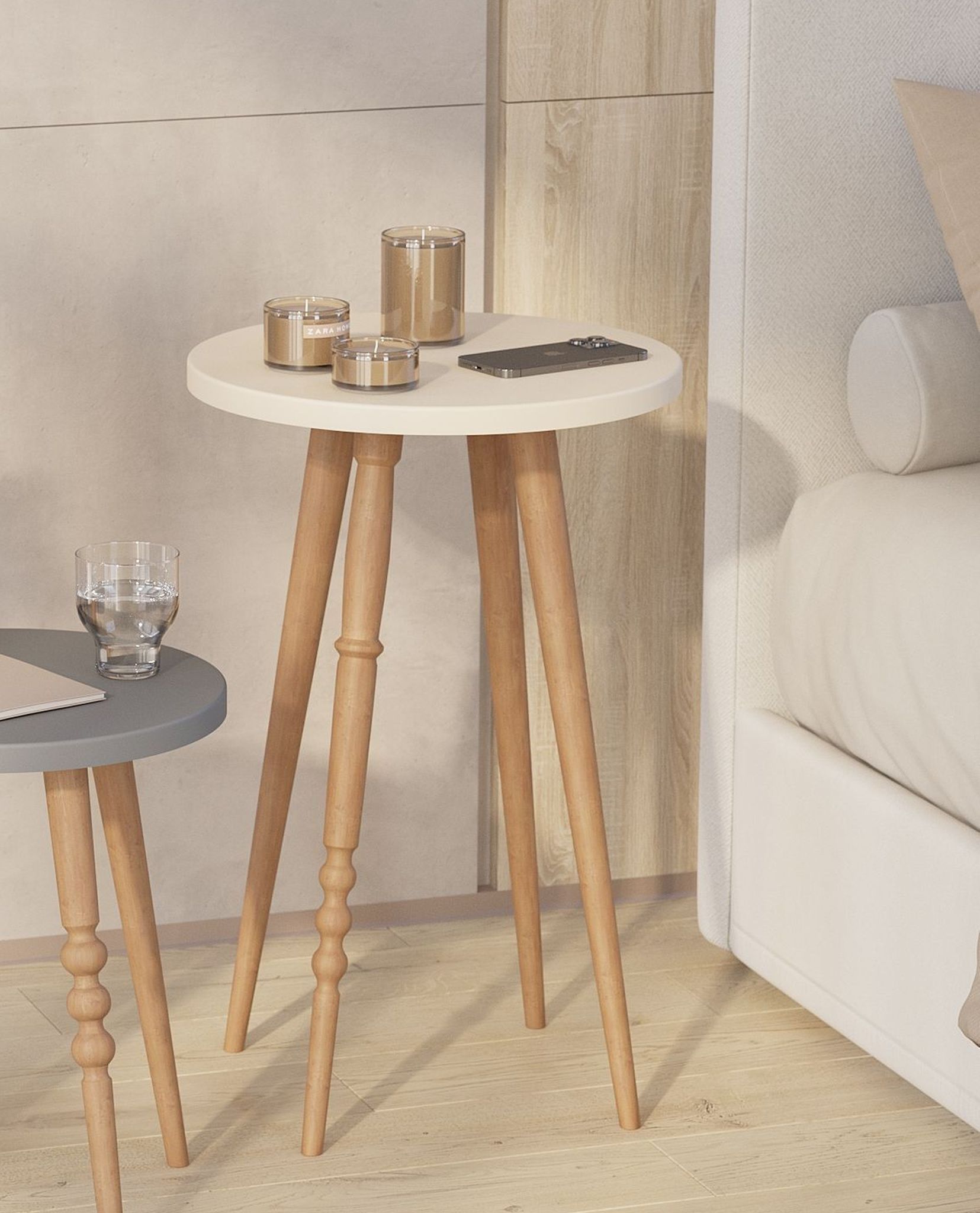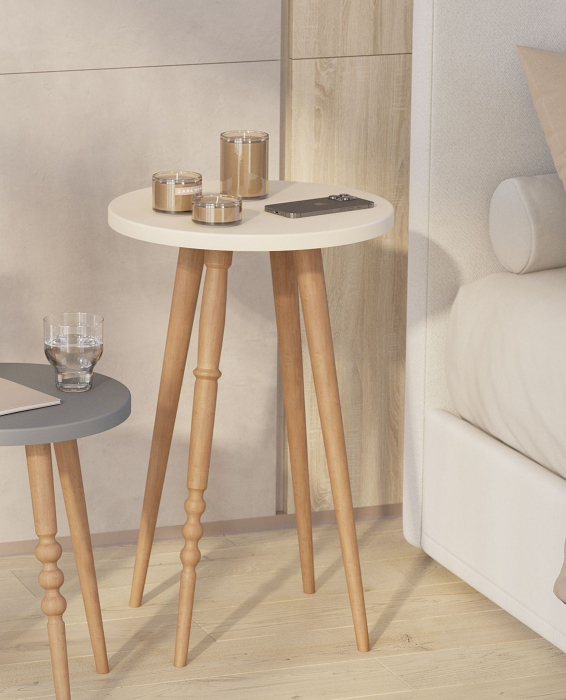 Современный журнальный столик на высоких ножках дополнит интерьер гостиной или спальни.