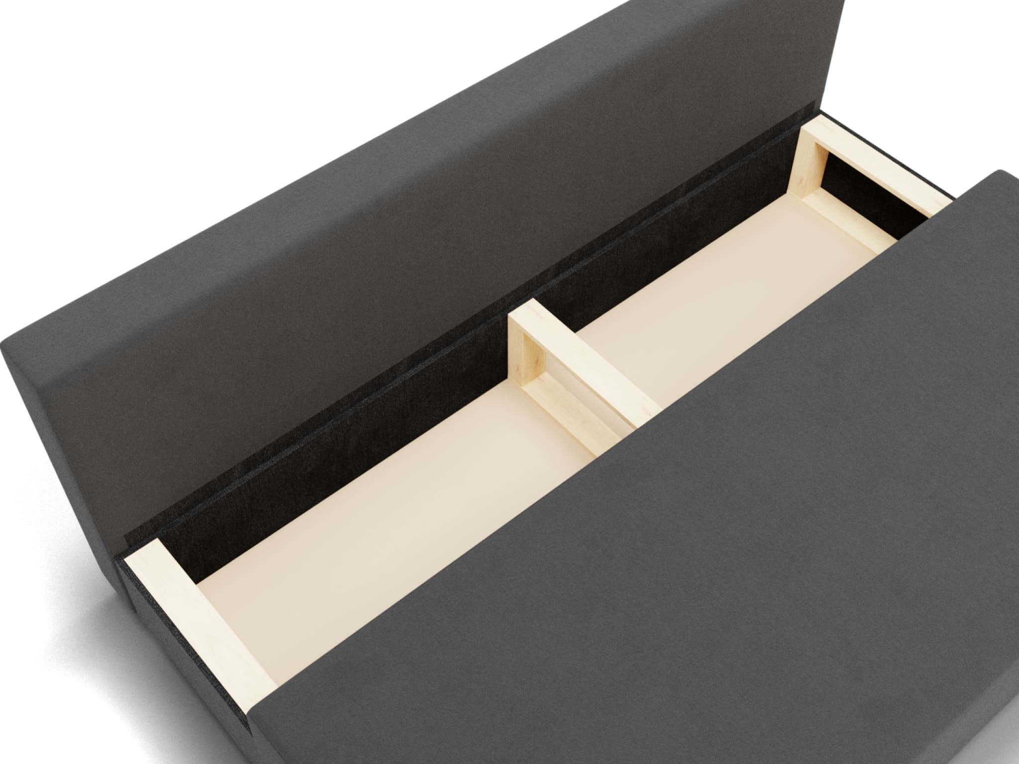 Диван-кровать имеет универсальный угол, что позволяет установить его в любой комнате, даже если она небольшая. Обивка выполнена из высококачественного велюра, который не только выглядит стильно, но и легко чистится.
