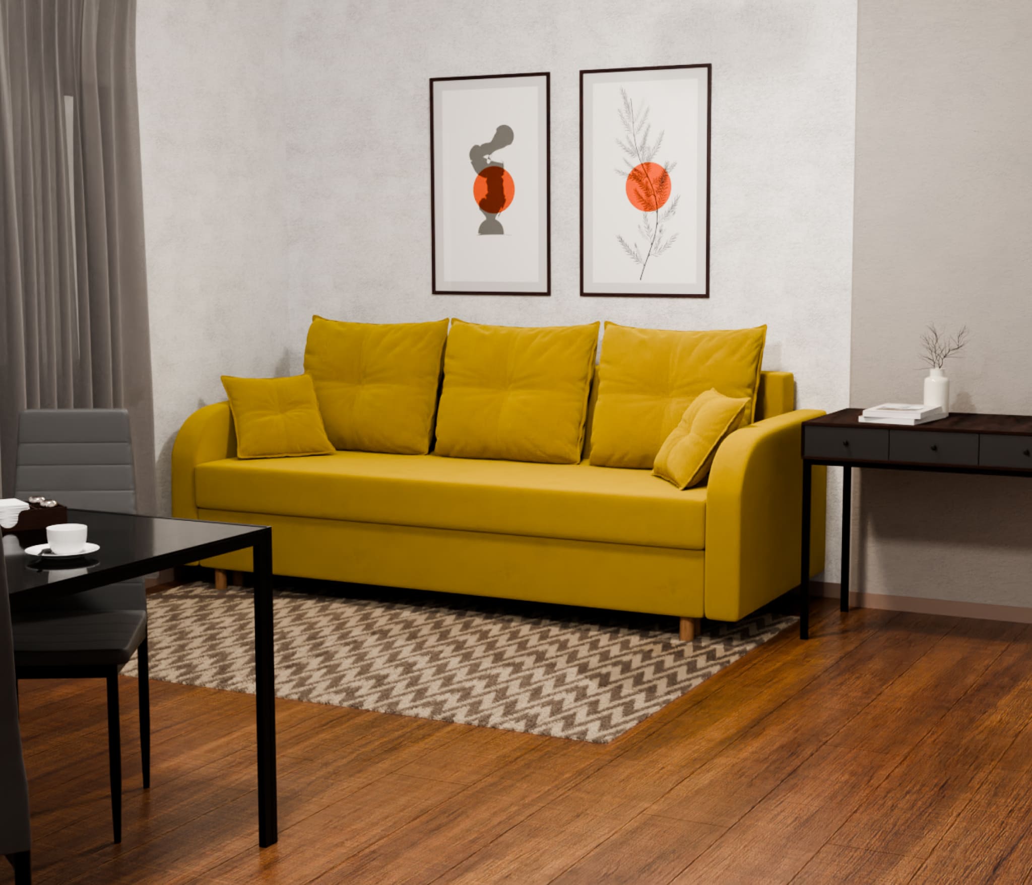 Прямой диван Генри,еврокнижка,велюр (Желтый) Код I0000383665