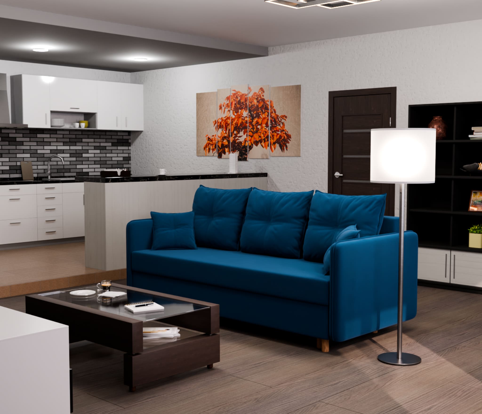 Прямой диван Лотос,еврокнижка,велюр (Синий) Код I0000383678