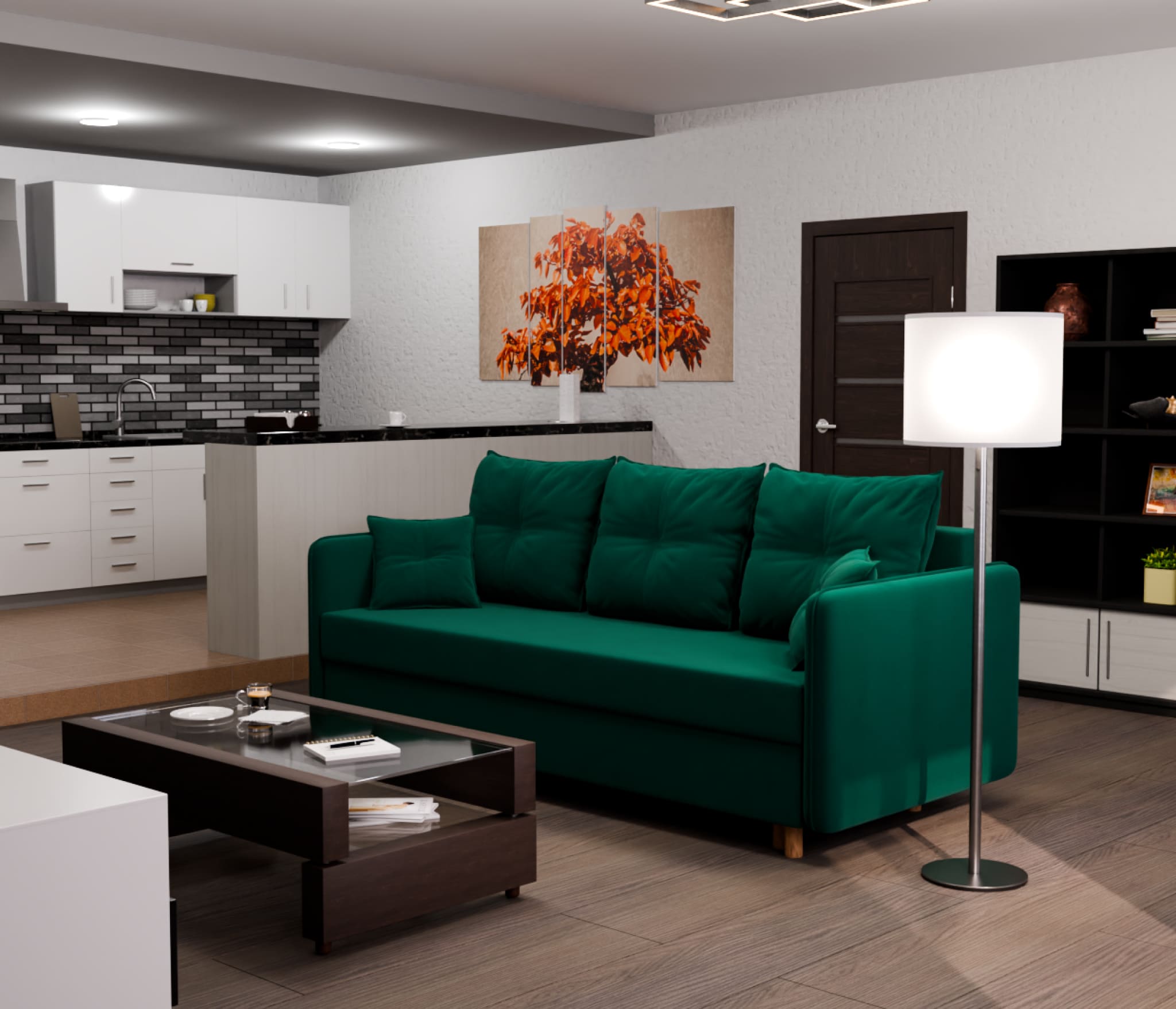 Прямой диван Лотос,еврокнижка,велюр (Зеленый) Код I0000383680