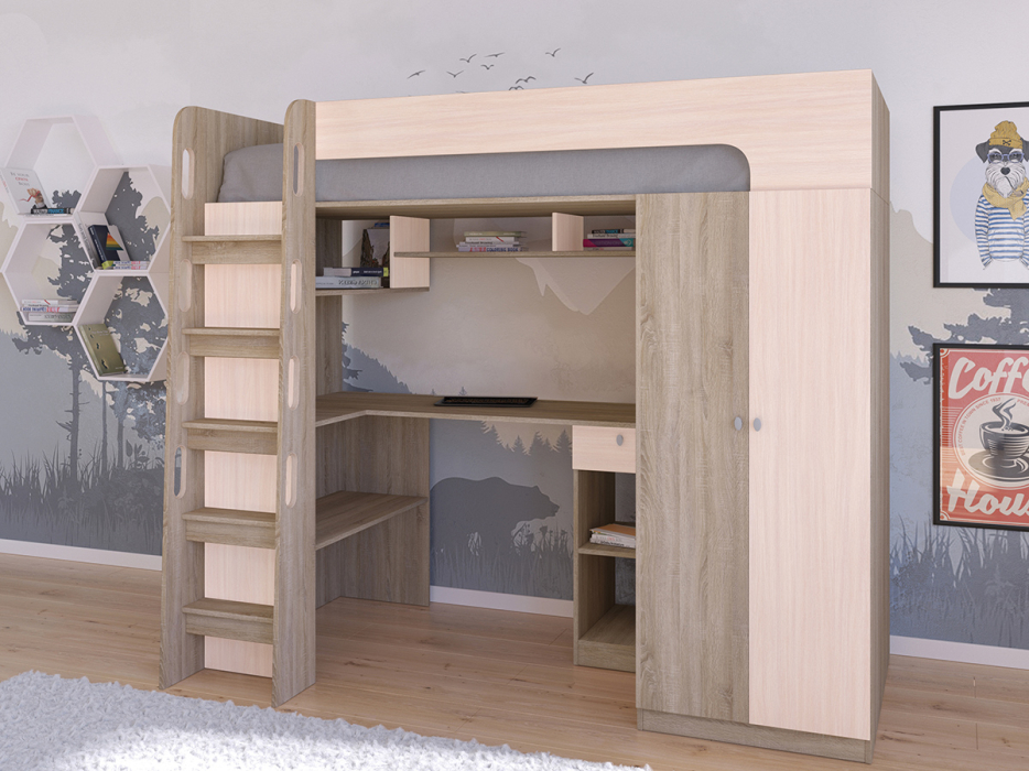 Кровать-чердак Астра 10 Дуб Сонома (Дуб молочный)