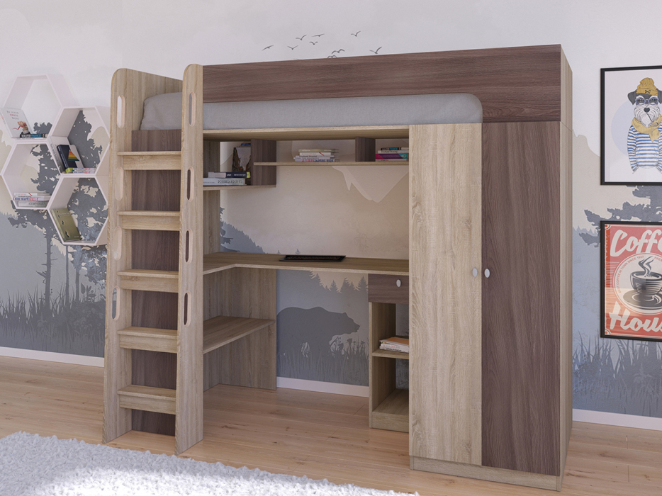 Кровать-чердак Астра 10 Дуб Сонома (Дуб шамони)