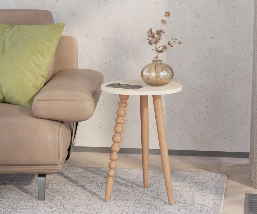 Современный журнальный столик на высоких ножках дополнит интерьер гостиной или спальни.