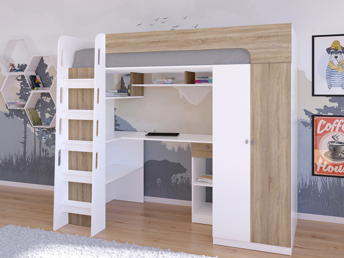 Кровать-чердак Астра 10 Белый (Дуб сонома)