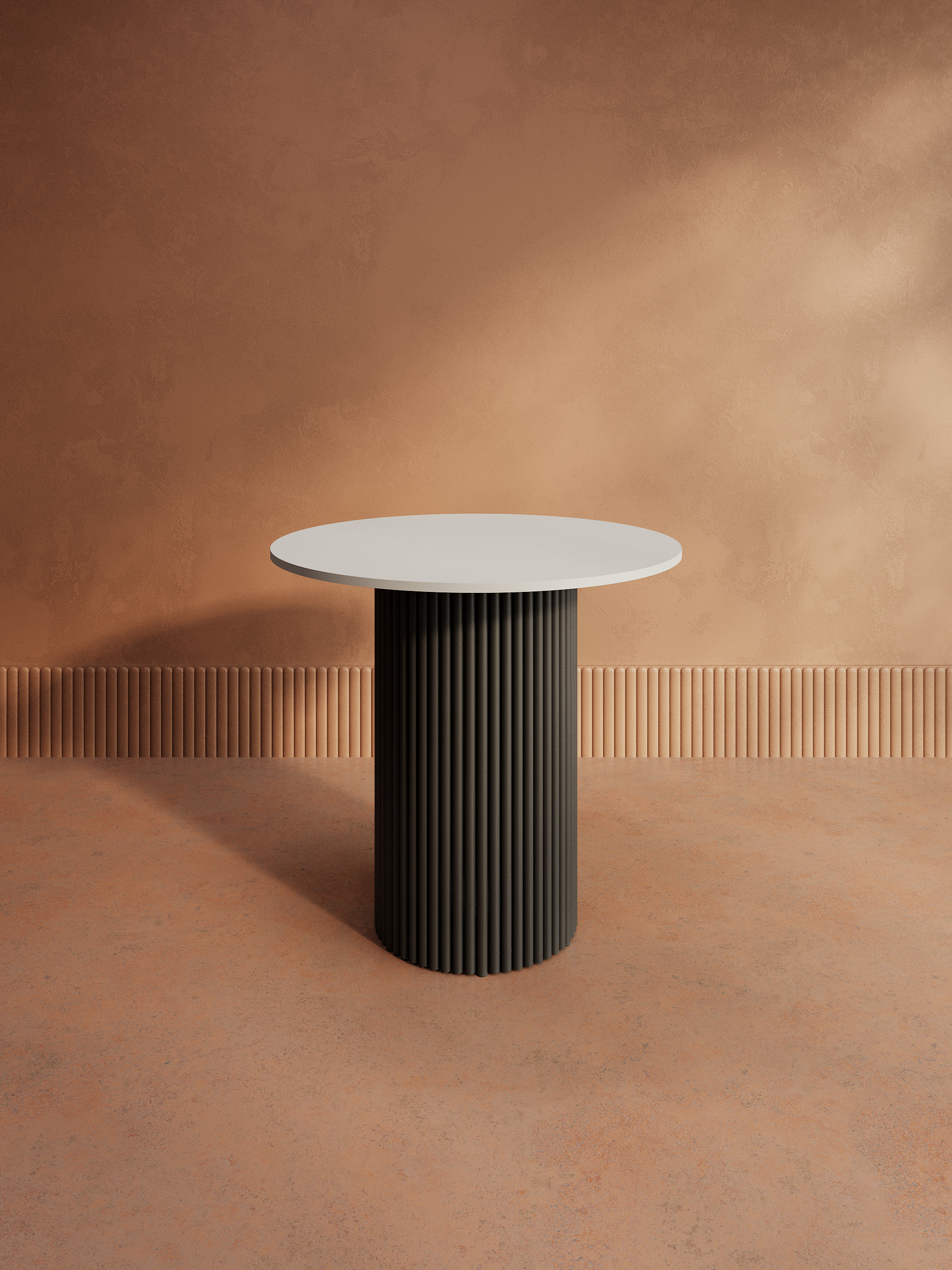 Дизайнерский круглый стол с металлическим трубчатым подстольем. Диаметр подстолья D400 мм. Столешница ЛДСП 16мм, диаметр D800 мм. Стандартный вариант - матовая порошковая окраска в чёрных или белых цветах. На заказ возможно изготовление столешницы ЛДСП в индивидуальном цвете и размере под заказ.