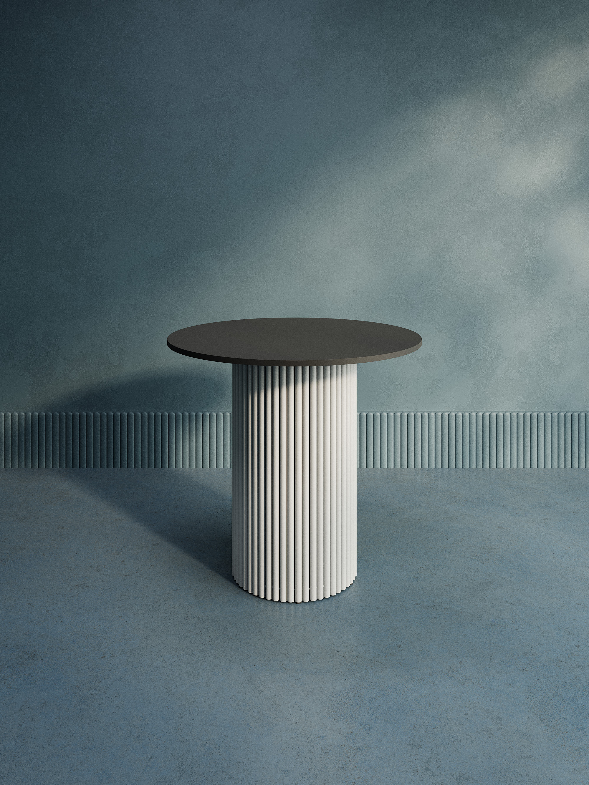 Дизайнерский круглый стол с металлическим трубчатым подстольем. Диаметр подстолья D400 мм. Столешница ЛДСП 16мм, диаметр D800 мм. Стандартный вариант - матовая порошковая окраска в чёрных или белых цветах. На заказ возможно изготовление столешницы ЛДСП в индивидуальном цвете и размере под заказ.