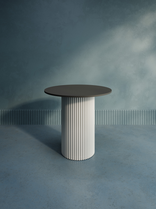 Стол круглый обеденный с белым металлическим подстольем TRUBIS Wood L 80 (Черный)