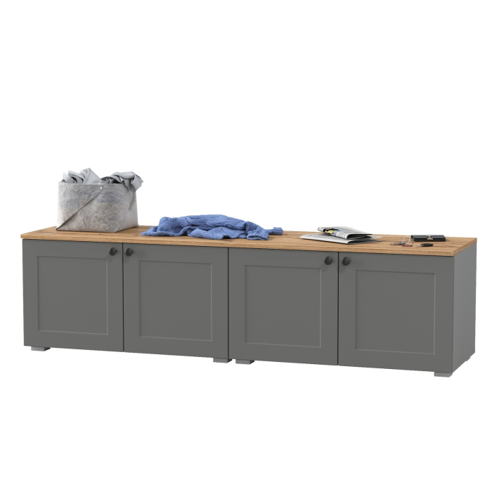 Выполнена в 3-х цветах: белый шагрень/дуб крафт золотой, серый графит/дуб крафт золотой и белый шагрень/серый графит/дуб крафт золотой.
