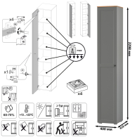 Габариты (ШхГхВ): шкаф-пенала с полками - 40х41,8х229,8 см.