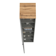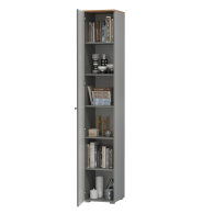 Узкий пенал имеет распашную дверь и внутри расположено пять полок. Две верхние и две нижние из них сделаны съемными, что позволяет вам настроить пространство под хранение различных вещей. Максимальная нагрузка на каждую полку - 8 кг. Универсальная сборка двери - может быть установлена как на левую, так и на правую сторону. Двери оснащены 4хшарнирными петлями без доводчиков, что обеспечивает простоту использования. Мебель оснащена регулируемыми опорами, выполненными из серого пластика. Лицевая фурнитура в виде черных аккуратных ручек. Изготовлена мебель из популярного материала - ламинированной ДСП 16 мм, торцы окромлены ПХВ плёнкой. Фасады выполнены из рамочного профиля из МДФ со вставками ДВПО с узором. Поставляется в разобранном виде, с комплектом фурнитуры, упакованная в 4-х слойный гофрокартон.