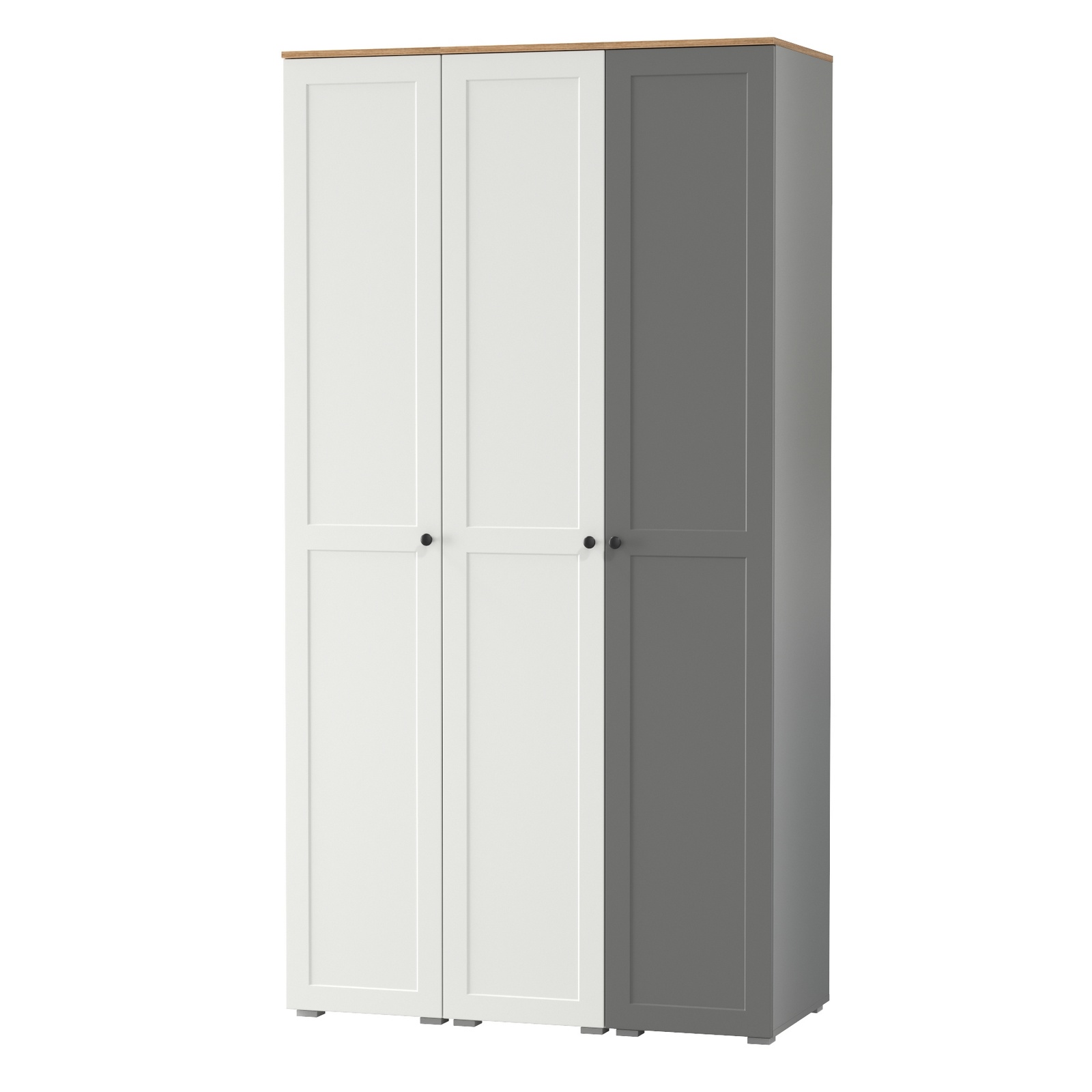 Выполнена в 3-х цветах: белый шагрень/дуб крафт золотой, серый графит/дуб крафт золотой и белый шагрень/серый графит/дуб крафт золотой.