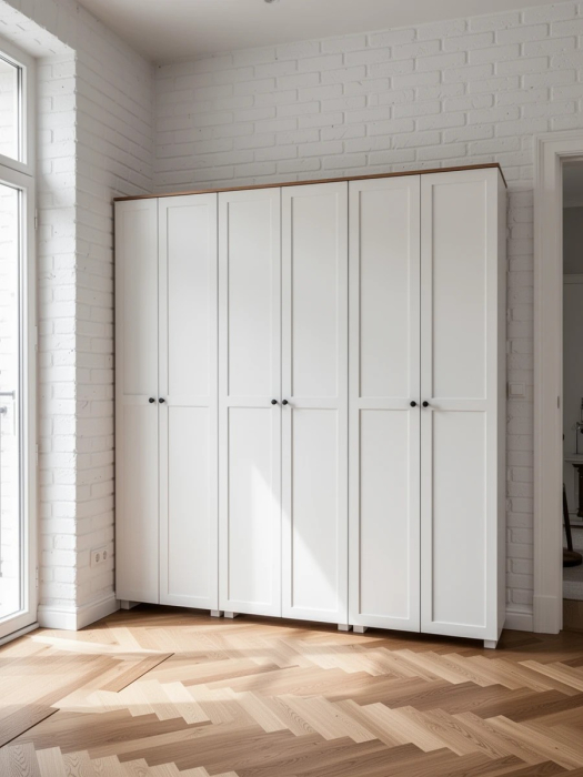 Комплектация состоит из трех шкафов Остин 13.224. Три шкафа объединены интегрированы в единое блок, обеспечивая практичное решение для организации хранения. Каждый шкаф с двумя распашными дверьми предлагает удобное решение для хранения вашей одежды и аксессуаров. В его верхней части устроена антресольная полка. Под ней горизонтальная штанга для одежды на плечиках, снизу полка и ниша. Макс. нагрузка на каждую полку - 5 кг. Двери оснащены 4хшарнирными петлями без доводчиков. Мебель оснащена регулируемыми опорами из серого пластика. Лицевая фурнитура в виде черных аккуратных ручек. Изготовлена мебель из ЛДСП 16 мм, торцы окромлены ПХВ плёнкой. Фасады из рамочного профиля из МДФ со вставками ДВПО с узором. Поставляется в разобранном виде.