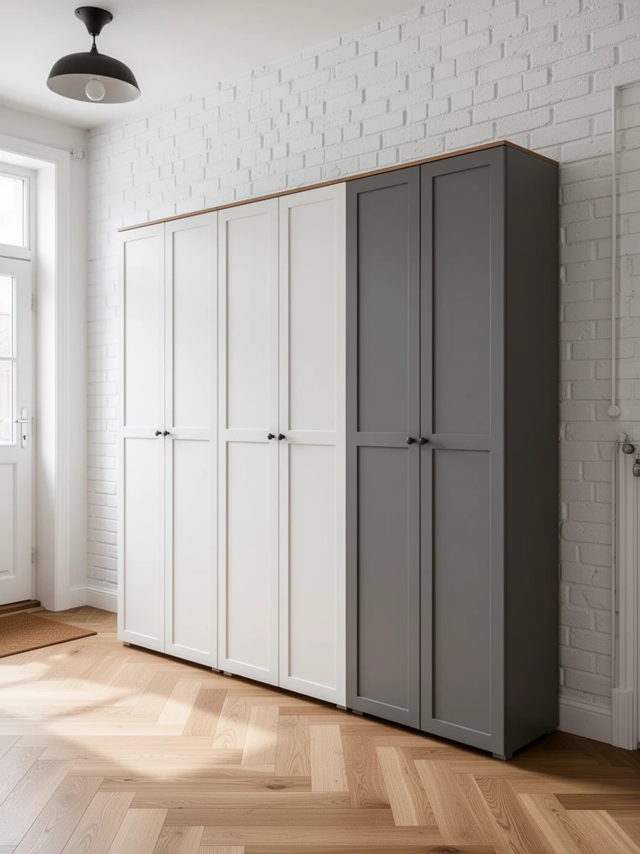 Выполнены в 3-х цветах: белый шагрень/дуб крафт золотой, серый графит/дуб крафт золотой и белый шагрень/серый графит/дуб крафт золотой.