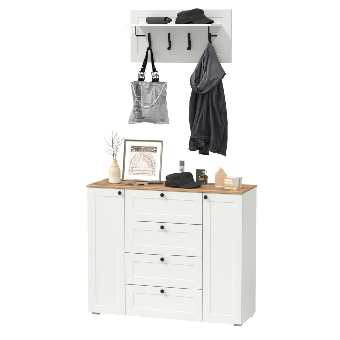 Комод 4 ящика и две дверки и вешалка для одежды Остин.