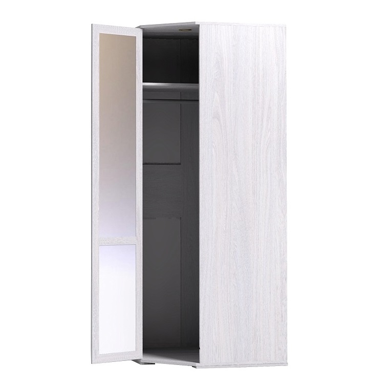 В малогабаритках и квартирах-студиях каждый свободный метр хочется использовать рационально. В данной ситуации решить вопрос грамотного хранения поможет угловой шкаф для одежды. Модель Sherlock 10 оснащена стационарной штангой длиной 81 см, на которой поместятся все Ваши деликатные вещи на плечиках. Кроме того, шкаф вмещает комплект полок для хранения одежды в сложенном виде и белья. Комплектуется беспроводной светодиодной подсветкой, которая крепится на крышку шкафа на магнитах. Габариты шкафа позволяют компоновать его с другимимодулями глубиной 59 см. Зеркальный фасад визуально облегчает пространство и добавляет функциональности.
