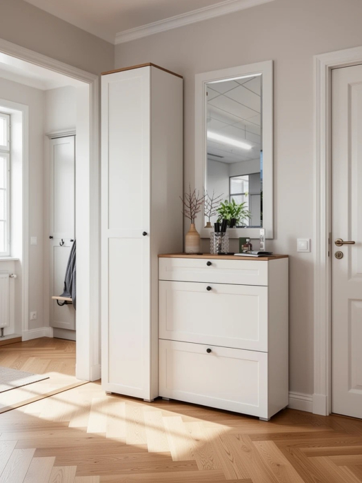 Шкаф-пенал с обувницей и зеркалом Остин.