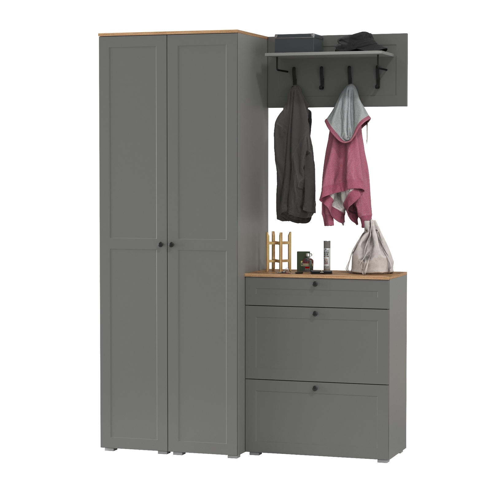 Отзывы о Столплит Два шкаф-пенала с полками и обувница с вешалкой для верхней одежды Остин Графит софт/дуб ирландский