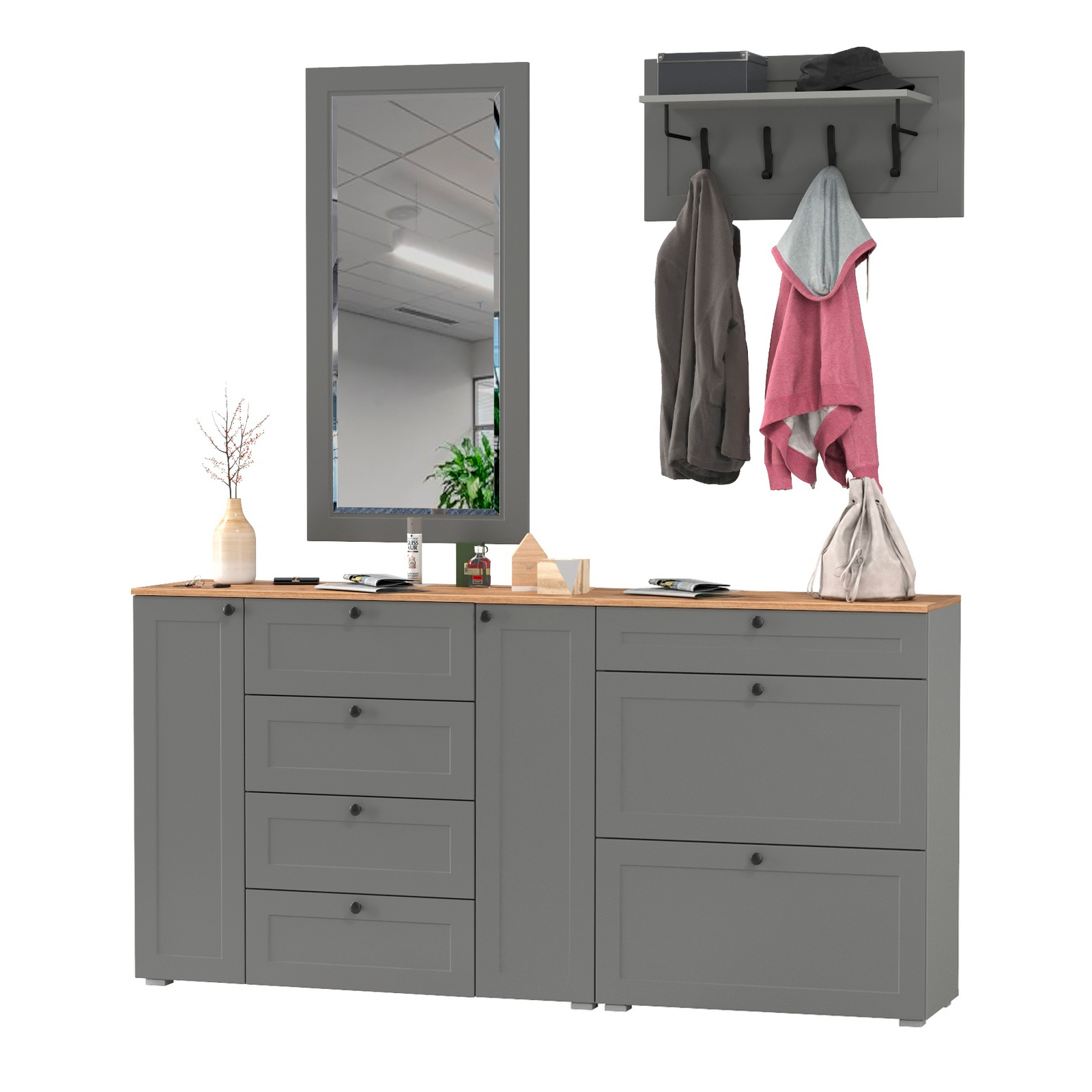 Отзывы о Столплит Мебель для прихожей Остин № 56 с вешалкой и зеркалом Графит софт/дуб ирландский
