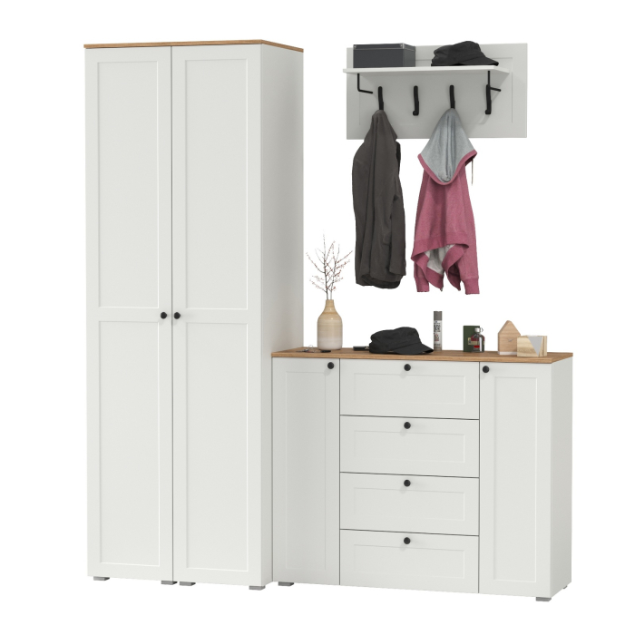Большой комод две дверки 4 ящика с вешалкой с полкой и два шкаф-пенала Остин.