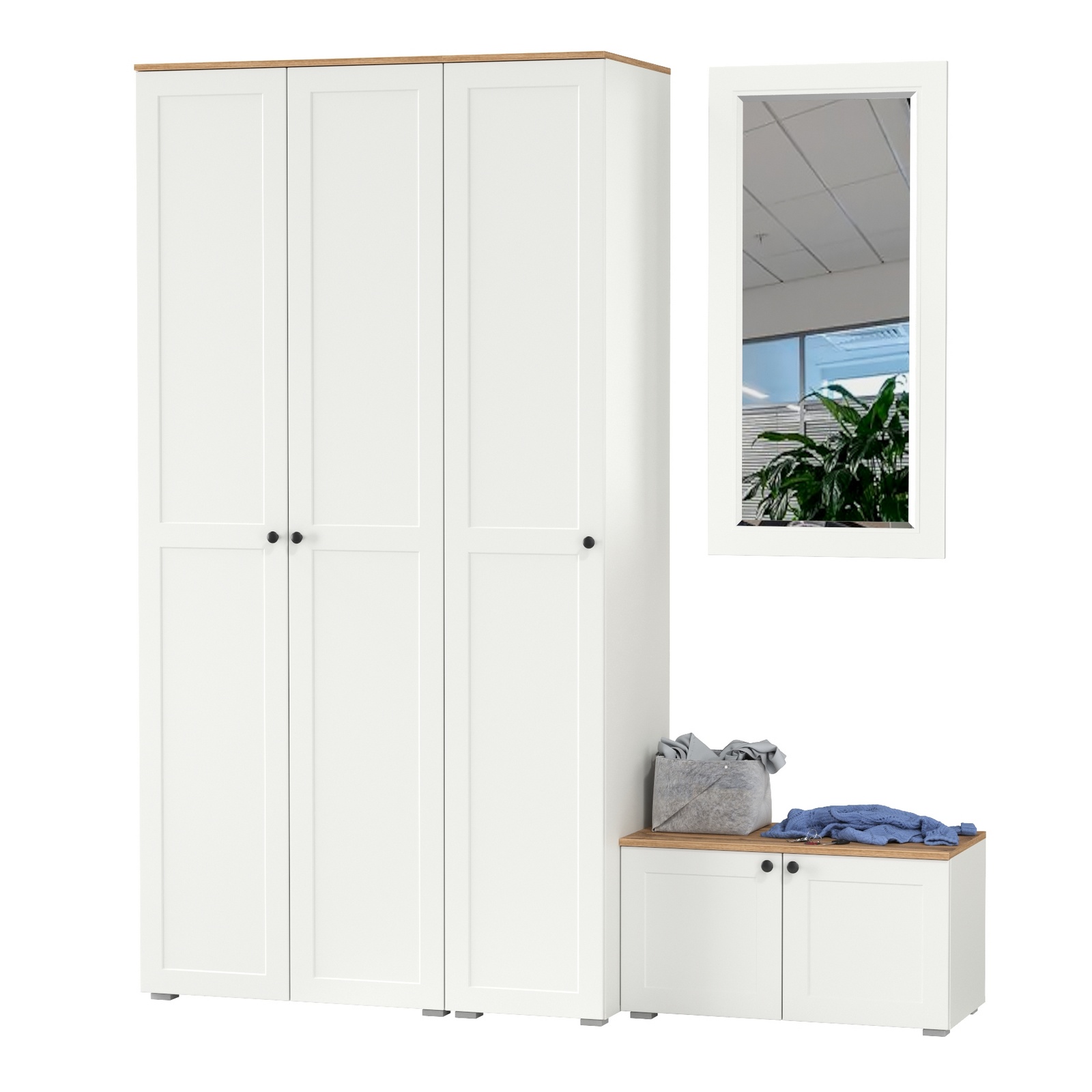 Отзывы о Столплит Шкаф 2-х дверный с тумбой и зеркалом и пеналом для прихожей Остин Дуб золотой/Белый