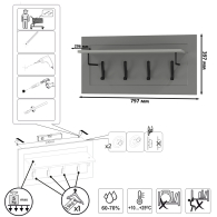 Комплектация состоит из пенала Остин 13.225, шкафа Остин 13.224, тумбы для обуви Остин 16.121 и вешалки Остин 15.12. Пенал имеет распашную дверь и внутри расположено шесть полок. Макс. нагрузка на каждую полку - 5 кг. Пенал имеет два варианта наполнения - 6 полок или штанга с антресольной и нижней полочками. 4 центральные полочки являются съемными и при необходимости, Вы оперативно можете переоборудовать пенал, установив штангу для одежды на плечиках. Универсальная сборка двери - может быть установлена как на левую, так и на правую сторону. Шкаф с двумя распашными дверьми предлагает удобное решение для хранения вашей одежды и аксессуаров. В его верхней части устроена антресольная полка. Под ней горизонтальная штанга для одежды на плечиках, снизу полка и ниша. Макс. нагрузка на каждую полку - 5 кг. Тумба с выдвижным ящиком и 2 откидными дверками с полками для 12 пар обуви снизу. Каждая откидная дверь расчитана для 6 пар невысокой обуви. Макс. нагрузка на каждую полку и ящик - 3 кг. Навесная вешалка с 4 двухрожковыми крючками и полкой для головных уборов. Полка для головных уборов над крючками и поддерживается 2 металл. элементами. Макс. нагрузка на каждый крючек - 1,5 кг, на полку - 5 кг. Скрытые направляющие выдвижных ящиков. Двери оснащены 4хшарнирными петлями без доводчиков. Мебель оснащена регулируемыми опорами из серого пластика. Лицевая фурнитура в виде черных аккуратных ручек. Изготовлена мебель из ЛДСП 16 мм, торцы окромлены ПХВ плёнкой. Фасады из рамочного профиля из МДФ со вставками ДВПО с узором. Поставляется в разобранном виде.