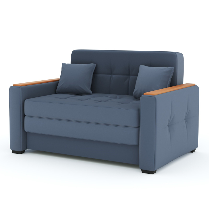 В стандартной модели установлены накладки цвета Орех, но при желание клиента накладки можно заменить на оттенок ""Дуб молочный"" или ""Венге"". Длина - 130, Высота - 81, глубина - 85, Длина, ширина спального места - 100*195, Механизм - Сунгирь, Наполнение - ППУ, Материал каркаса - брус сухой строганный, фанера, ДВП, Кол-во спальных мест - 1 спальное место, Вес - 50,0 кг, Глубина сиденья без подушек - 60,0 см Декоративные подушки - в комплекте 2 шт 40*40, Жесткость - средняя, Материал накладок - МДФ, Бельевой ящик - есть.