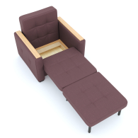 Кресло поставляется в собранном виде, только требуется установить спинку. Длина - 100, Высота - 81, глубина - 85, Длина, ширина спального места - 70*195, Механизм - Сунгирь, Наполнение - ППУ, Материал каркаса - брус сухой строганный, фанера, ДВП, Кол-во спальных мест - 1 спальное место, Вес - 39,5 кг, Декоративные подушки - в комплекте 2 шт 40*40, Жесткость - средняя, Материал накладок - МДФ, Бельевой ящик - есть.