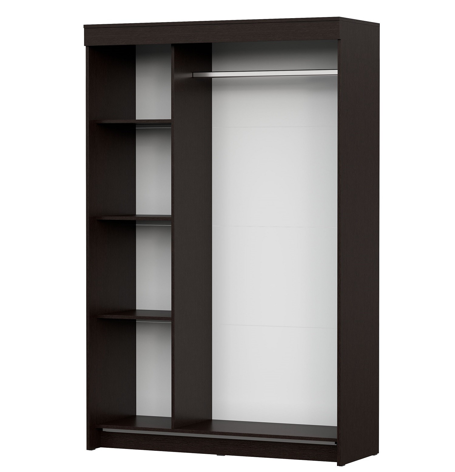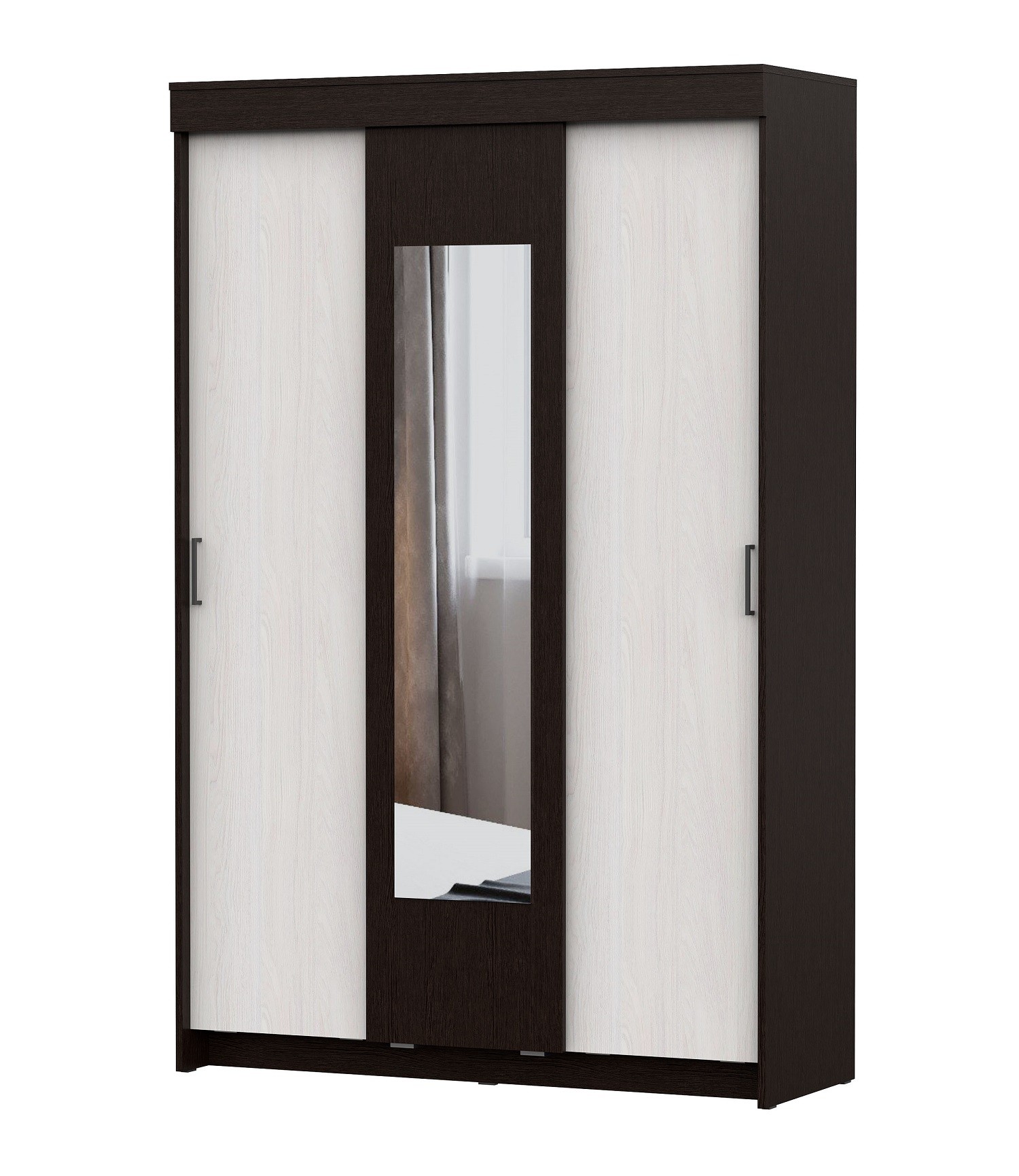 Шкаф-купе в контрастном декоре будет гармонично смотреться в прихожей, гостиной или спальне. В зависимости от расположения, Вы организуете грамотное хранение одежды, вещей, аксессуаров и всего того, что необходимо спрятать от лишних глаз. Наполнение шкафа представлено комплектом полок и стационарной штангой. За счет механизма открывания дверей "купе" Вы можете расположить шкаф даже в малогабаритном помещении и сэкономить пространство перед ним.