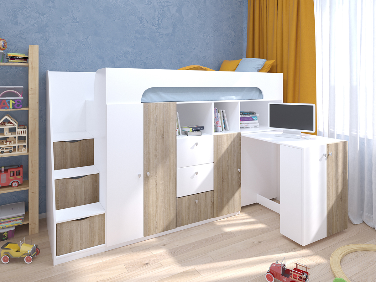 Кровать-чердак Астра 11 Белый (Дуб сонома)