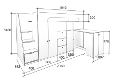 Кровать-чердак Астра 11 - отличный способ сэкономить место в комнате. Кровать обладает полноценным спальным местом и в то же время вмещает в себе массу отделения для хранения одежды и вещей. Так же предусмотрена рабочая поверхность, которая может быть убрана после занятий.