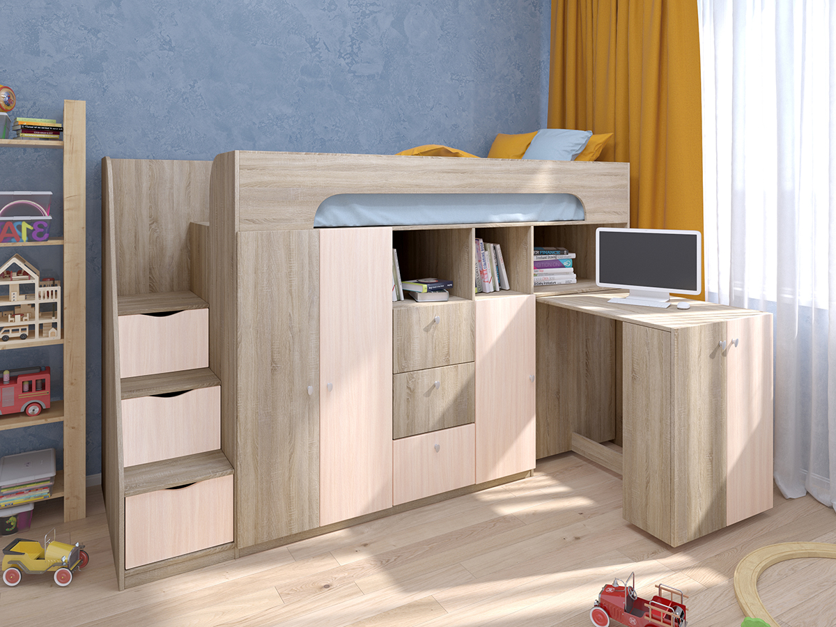 Кровать-чердак Астра 11 Дуб Сонома (Дуб молочный)