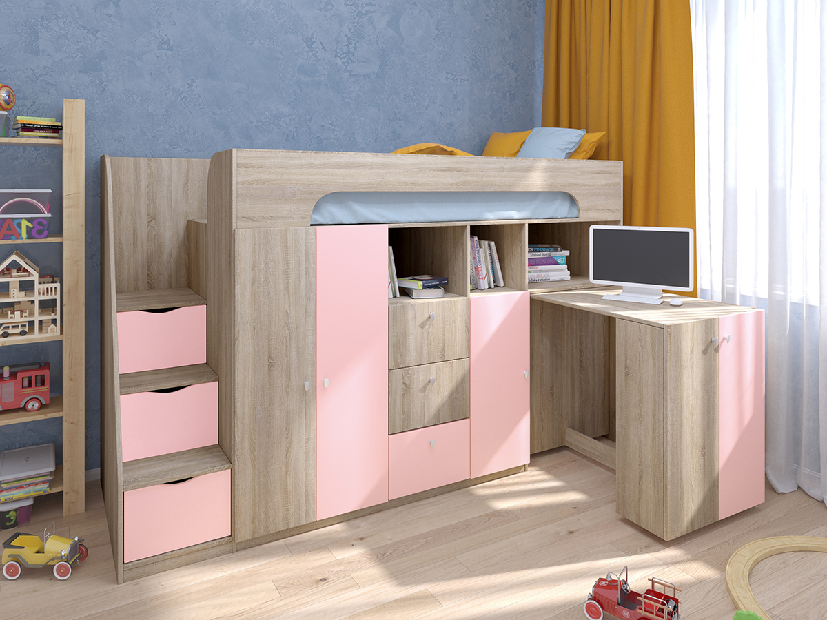 Отзывы о Столплит Кровать-чердак Астра 11 Дуб Сонома Розовый