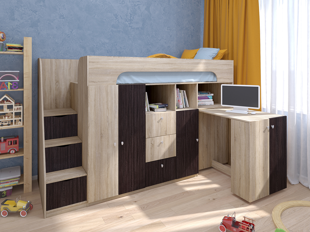 Кровать-чердак Астра 11 Дуб Сонома (Венге)