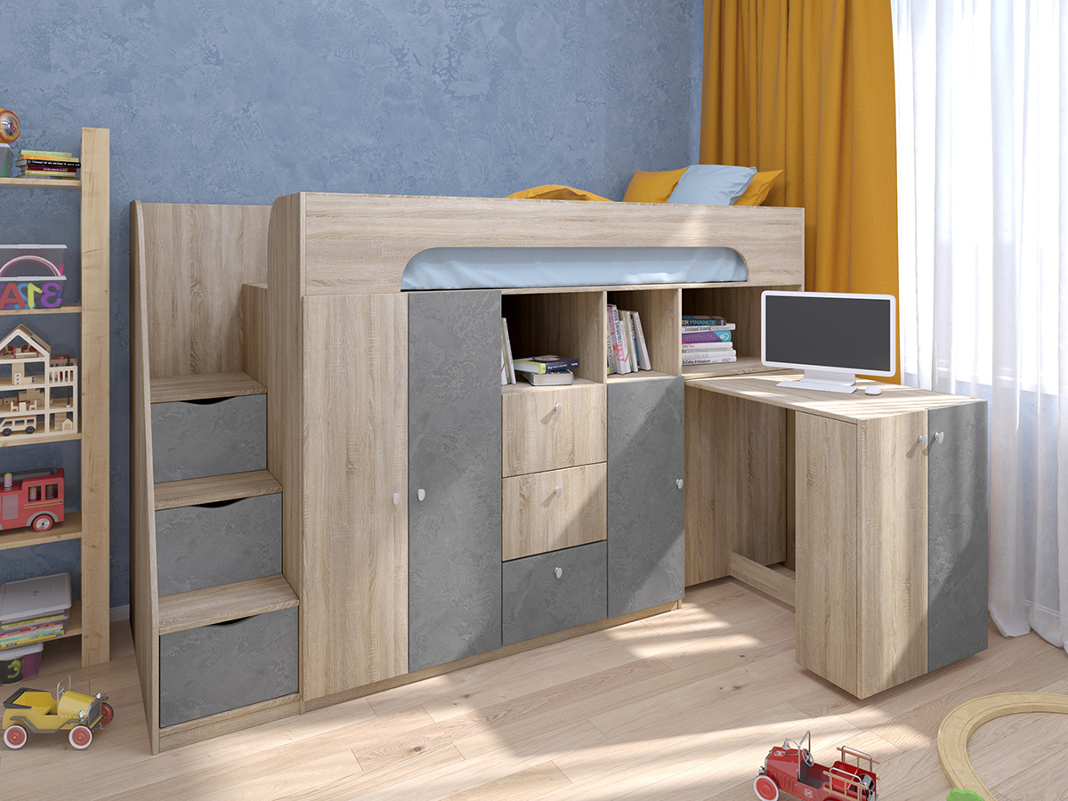 Кровать-чердак Астра 11 Дуб Сонома (Железный камень)