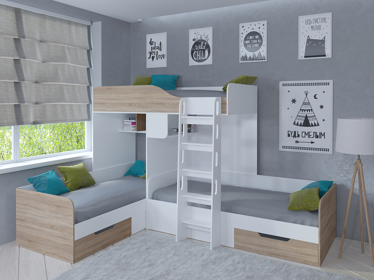 Отзывы о Столплит Кровать двухъярусная Трио Белый Дуб сонома