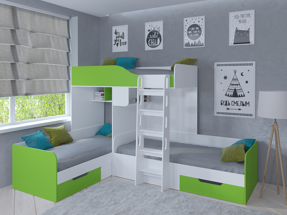 Отзывы о Столплит Кровать двухъярусная Трио Белый Салатовый