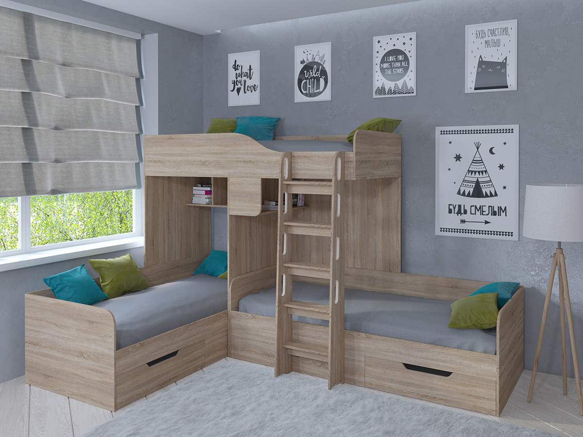 Кровать двухъярусная Трио Дуб Сонома (Дуб сонома)