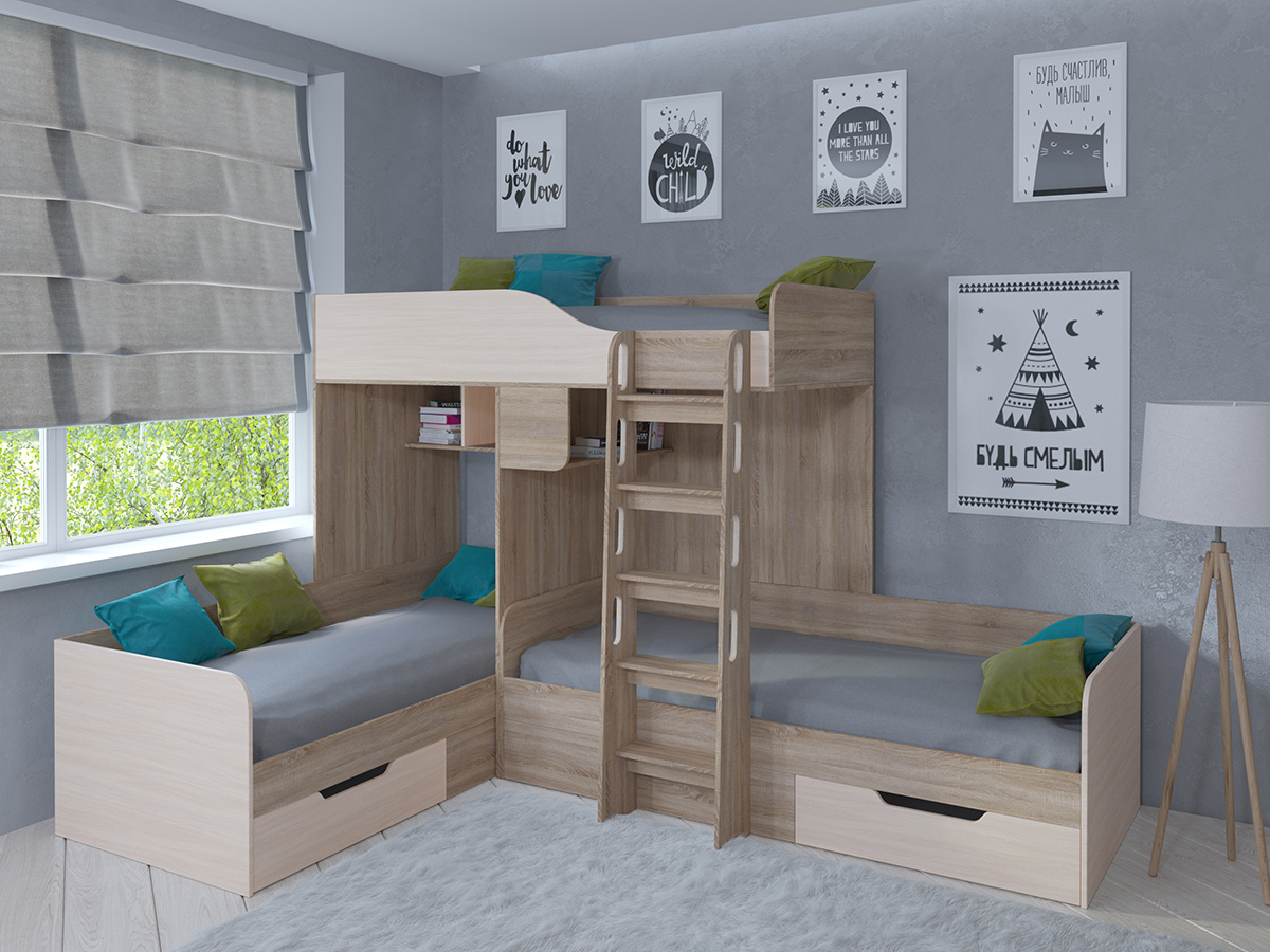 Кровать двухъярусная Трио Дуб Сонома (Дуб молочный)