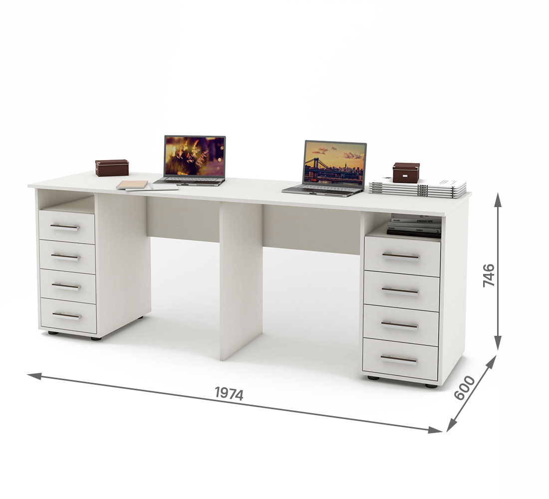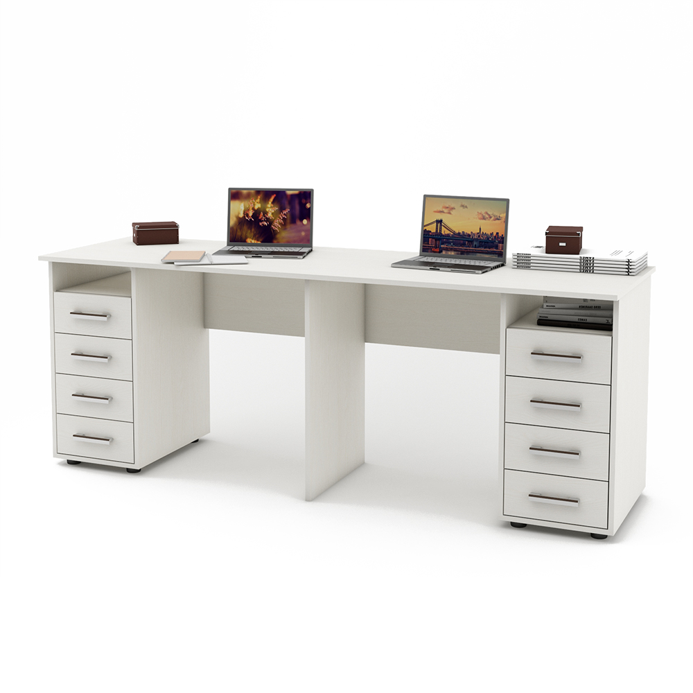 Стол обеспечит рабочими местами сразу двух человек и будет отличным выбором как для небольшого офиса, так и для домашнего интерьера. Стол позволяет вместить все необходимое, при этом не мешая рабочему процессу.