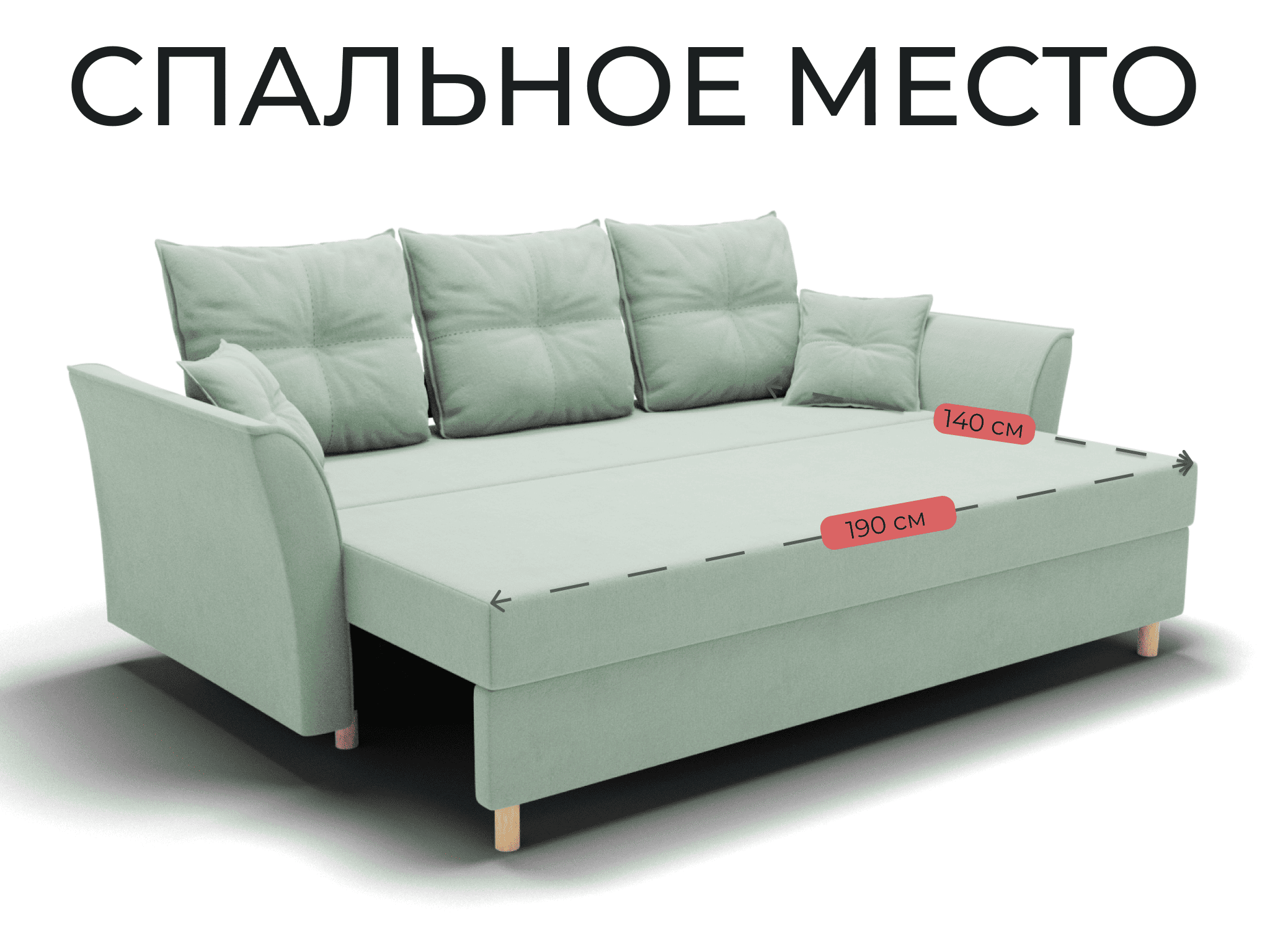 Спальное место: ширина - 140 см, длина - 190 см. Максимальная нагрузка - 250 кг.