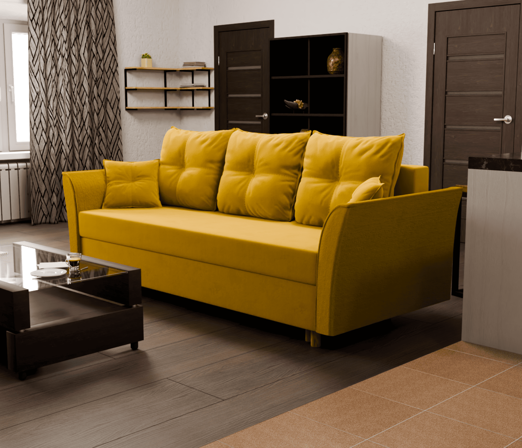 Этот диван-кровать является прекрасным решением для тех, кто ценит комфорт, стиль и универсальность. Изготовленный из прочного велюра, механизм "евро-книжка", что делает его легко трансформируемым и подходящим для любого интерьера. Благодаря съемным подушкам, диван можно легко адаптировать под ваши потребности и обеспечить дополнительное удобство. Его высота, ширина и глубина обеспечивают удобную посадку, а размеры спального места позволяют разместить до 2 человек.