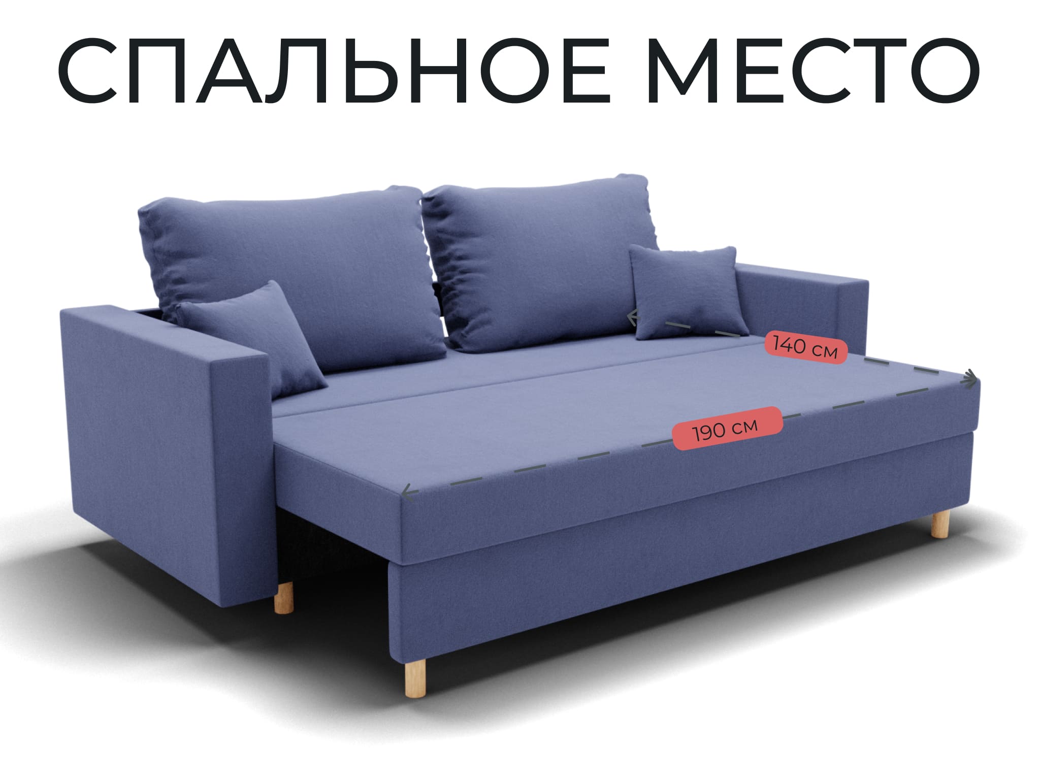 Спальное место - ширина 140см, длина 190см. Максимальная нагрузка 250кг.