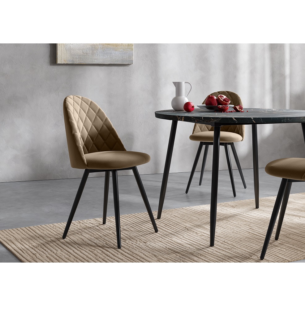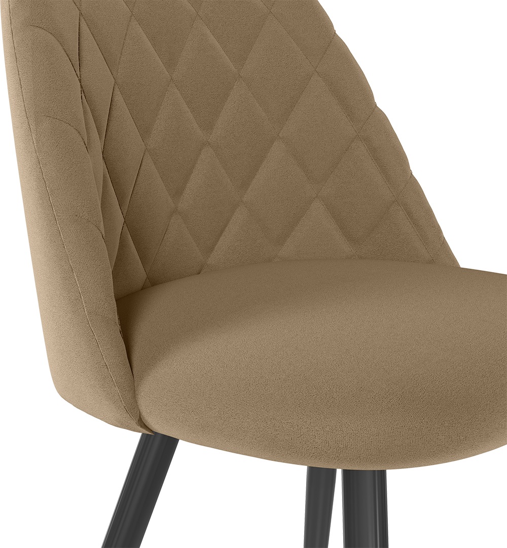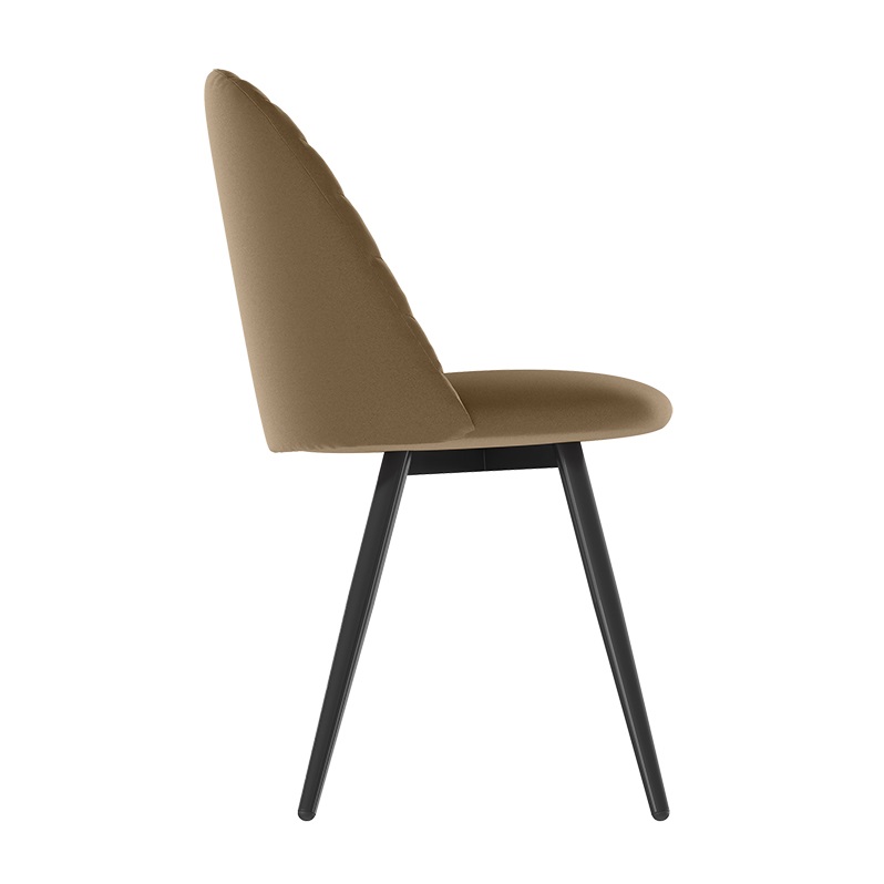 Компактная модель стула с мягкой спинкой, украшенной стяжкой. Разнообразие вариантов обивки позволит Вам по-новому обыграть интерьер кухни.