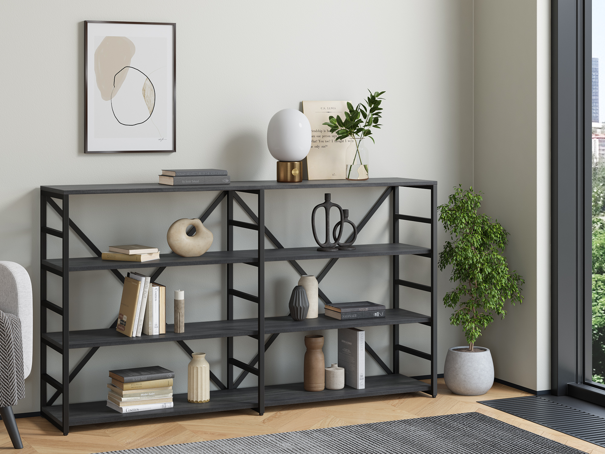 Стеллаж Айсберг Лофт 160/4-2 (Черный) (Северное дерево темное)
