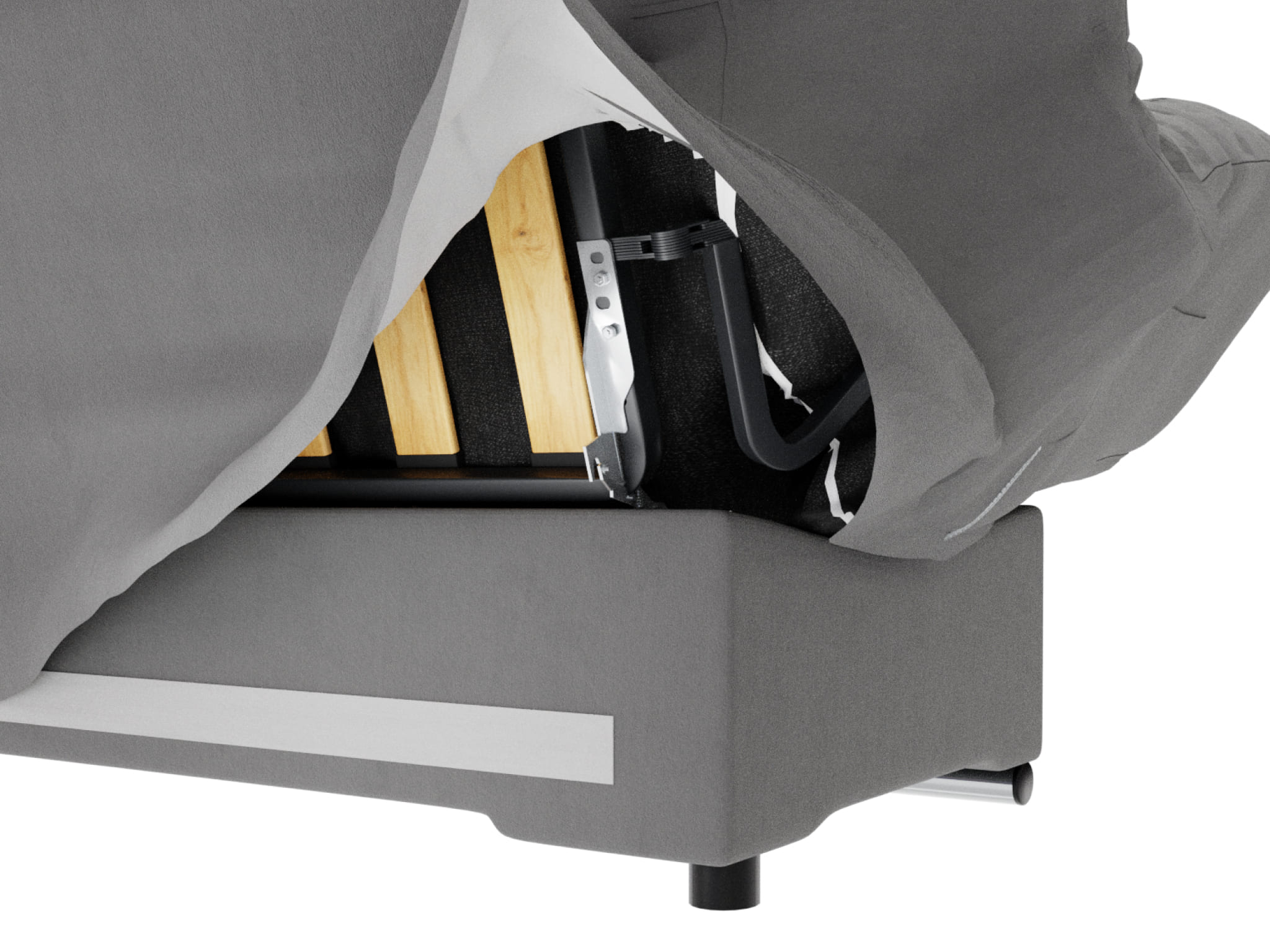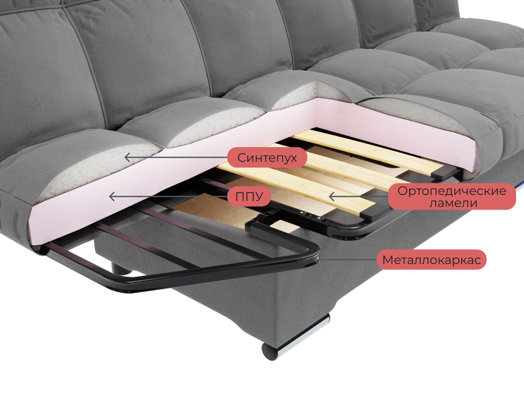 Современный и удобный диван-кровать с тремя возможными положениями вместо двух. Он отлично подойдет для современного интерьера и станет прекрасным местом для размещения гостей или друзей. В собранном виде может служить как место для отдыха или сна, а в полностью расправленном – как полноценное спальное место.